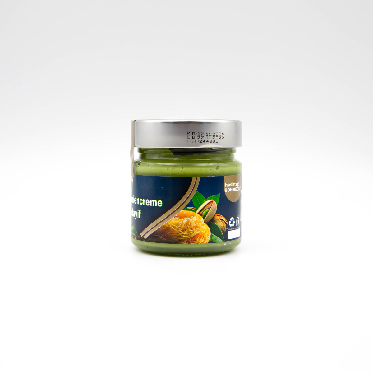 Der Pistazien Creme Kadayif Mix 220g von #schmeckt ist eine hochwertige orientalische Süßspeise, die knusprige, geröstete Kadayif-Teigfäden mit einer cremigen Pistazienfüllung vereint. Mit einem Pistazienanteil von 30 % und einer Rezeptur im traditionellen Dubai Style bietet diese Delikatesse ein unvergleichliches Geschmackserlebnis. Perfekt geeignet als Dessert, süßer Snack oder besonderes Geschenk für Feinschmecker.