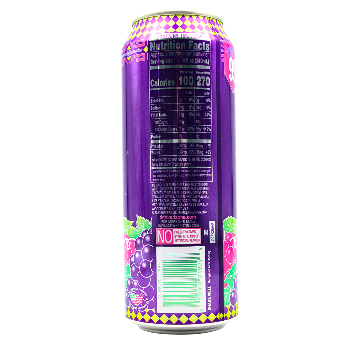 Mit dem Arizona Grapeade 650 ml holen Sie sich ein fruchtiges Geschmackserlebnis in die Hand. Der Drink vereint die Süße und Frische sonnengereifter Trauben in einem köstlichen Fruchtcocktail, der perfekt für unterwegs, beim Sport oder einfach als erfrischender Genussmoment ist.