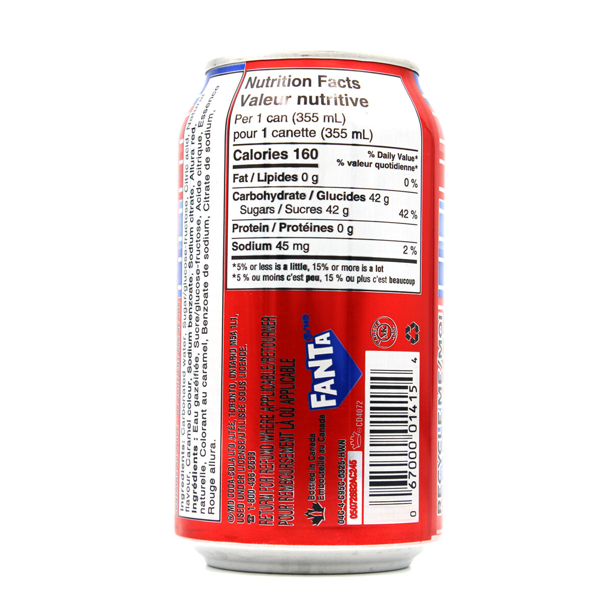 Kohlensäurehaltiges Wasser, Zucker, Zitronensäure, Natriumcitrat, natürliches Aroma, Konservierungsstoffe (Natriumbenzoat), Farbstoff (Allura Red), Karamellfarbstoff.