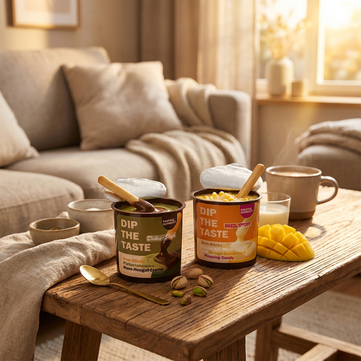 Erlebe den aufregenden Mango Brizzl-Effekt und Dubai Style mit unserem Hashtag Schmeckt Dip the Taste. Perfekter Snack-Genuss aus Deutschland!