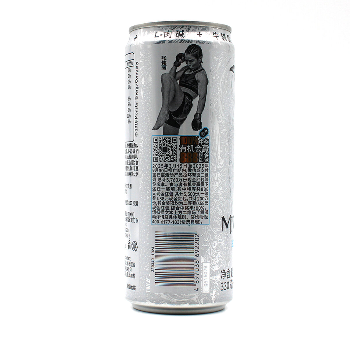 Monster Energy Ultra (无糖版) liefert den vollen Energieschub – ganz ohne Zucker. Diese limitierte Asia Edition kommt im kompakten 330 ml-Format und präsentiert sich in der stylischen weißen Dose mit silbernem Muster.