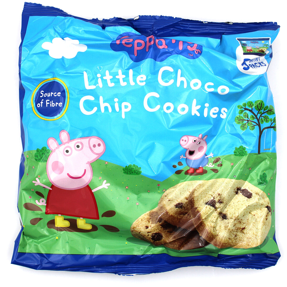 Peppa Pig Little Choco Chip Cookies – ein kinderfreundlicher Snack mit Spaß und Geschmack. Die Mini-Schokoladenkekse sind reich an Ballaststoffen und kommen in fünf praktischen Portionsbeuteln à 20 g.