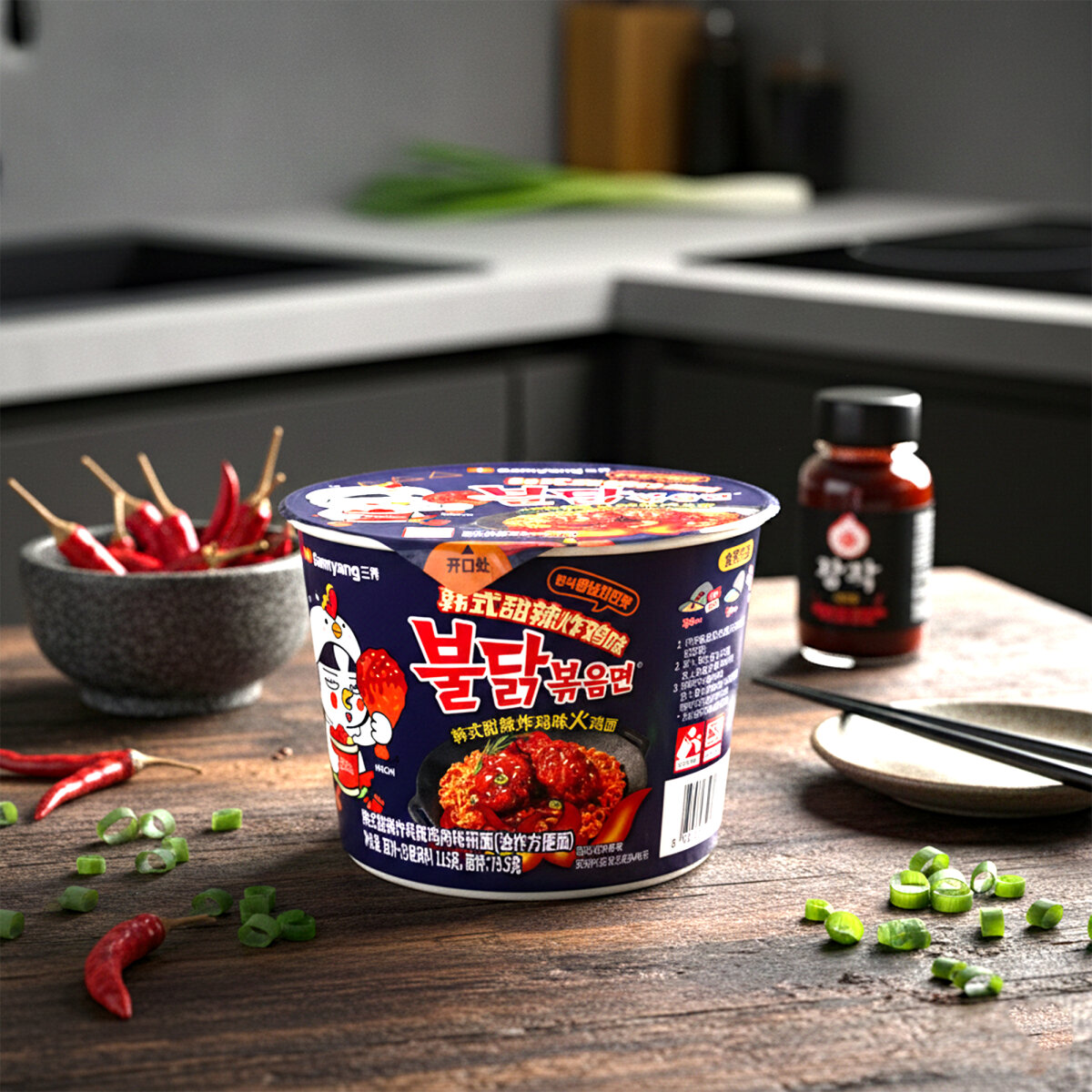 Hergestellt in Südkorea von Samyang Foods, einem der bekanntesten Produzenten koreanischer Instant-Nudeln. Bekannt für die ikonischen "Buldak" (Feuerhuhn)-Varianten.