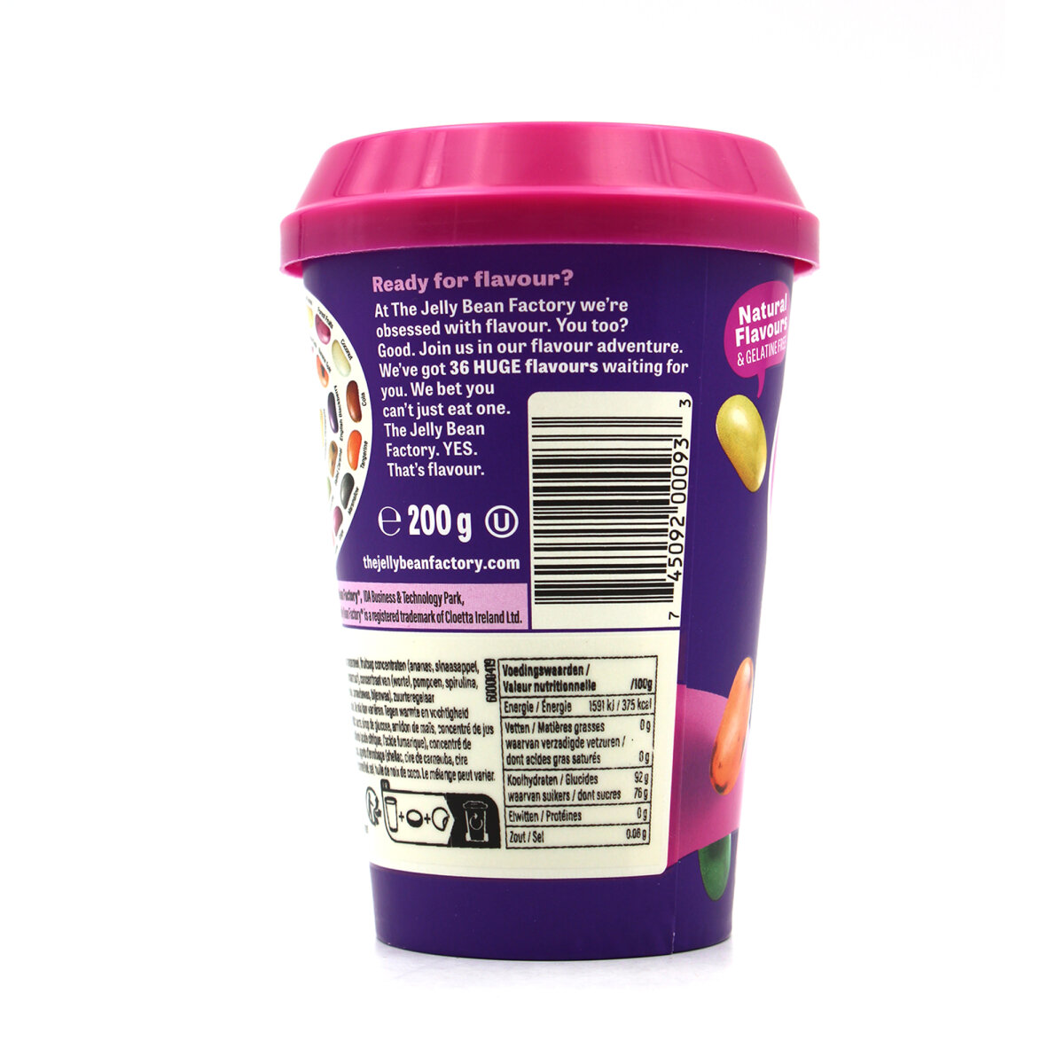 Im praktischen 200g Cup erwarten dich 36 Sorten – von fruchtig-süß bis exotisch. Jede Jelly Bean ist ein kleines Geschmackserlebnis mit intensiven Aromen.