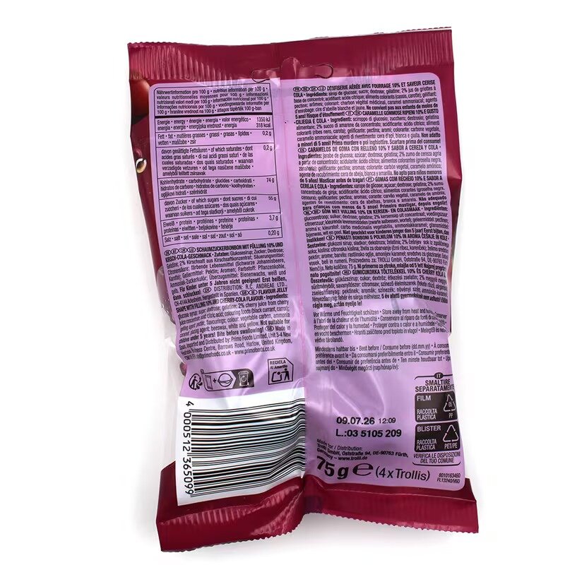 Erlebe den aufregenden Mix aus Kirsche und Cola mit diesen leckeren Trolli Flavor Bombs. Der ideale Snack für zwischendurch, direkt aus den USA importiert.